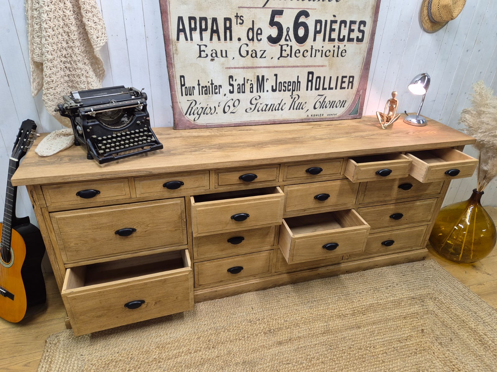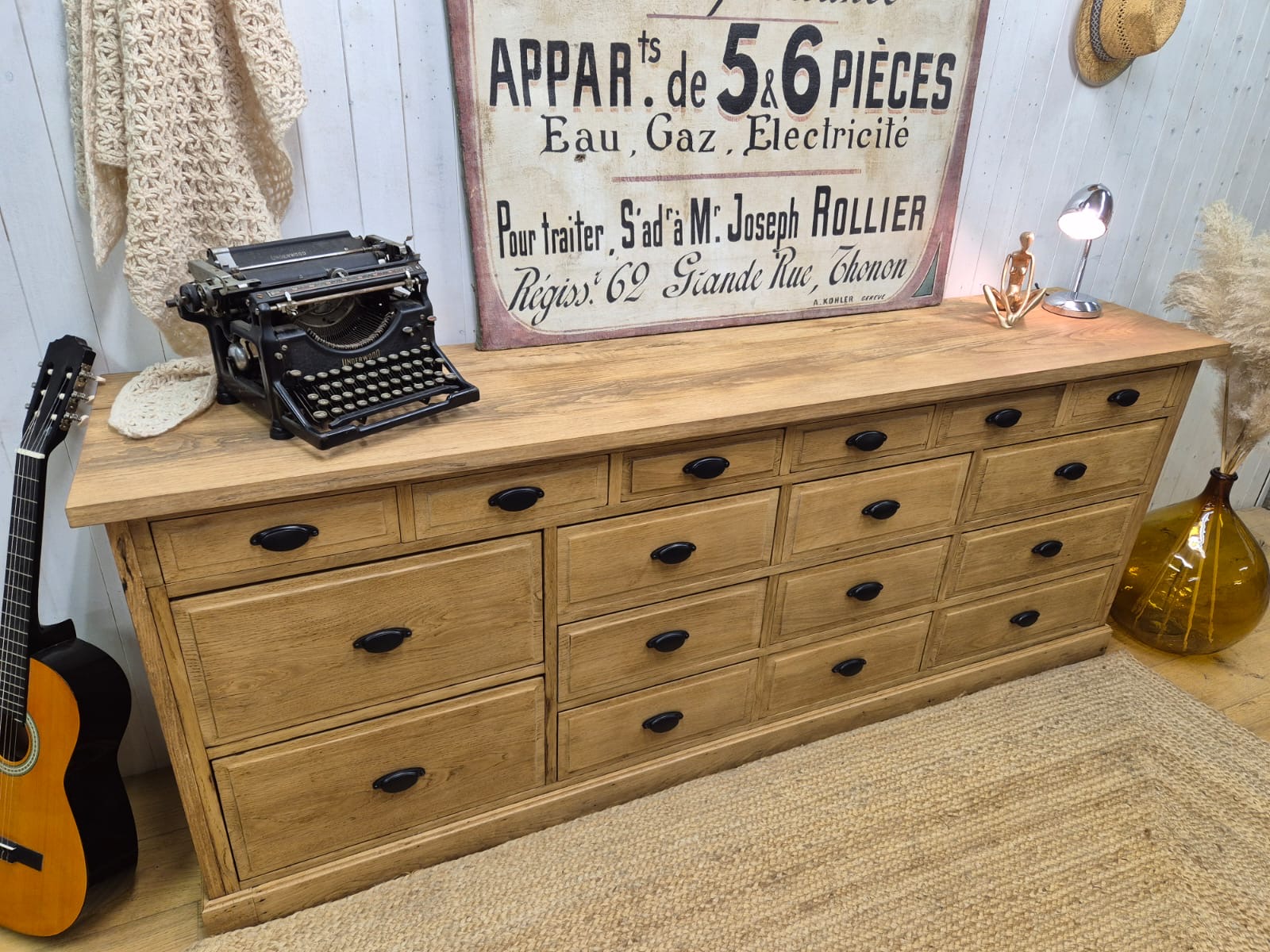 Meuble de métier 17 tiroirs en chêne